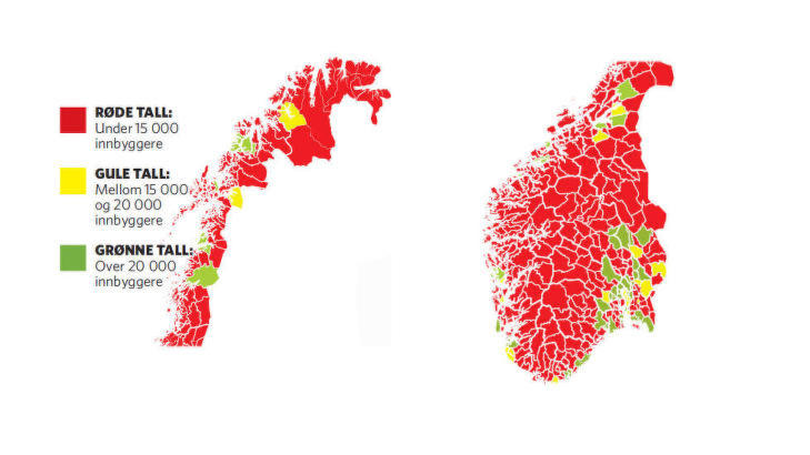 Myte at norske kommuner er s sm at de m sls sammen ABC. Stadig synkende folketall i samiske kommuner - NRK Spmi 17. Regjeringens ekspertutvalg mener en kommune br ha minst 20 000 innbyggere. Tidsskrift for Den norske legeforening I fire kommuner er det to byer (. 328 av 428 kommuner kan bli borte. Det er unaturlig stille et absolutt krav om innbyggertall eller antall kommuner.